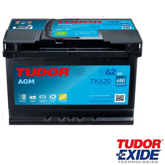 Bateria automóvel 12V 62Ah 680A Exide Tudor Start-Stop AGM EK620 TK620 EK600 TK600