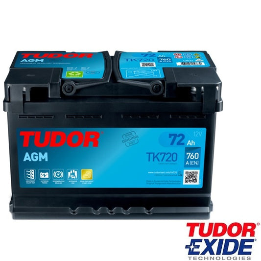 Bateria automóvel 12V 72Ah 760A Exide Tudor Start-Stop AGM EK720 TK720 EK700 TK700