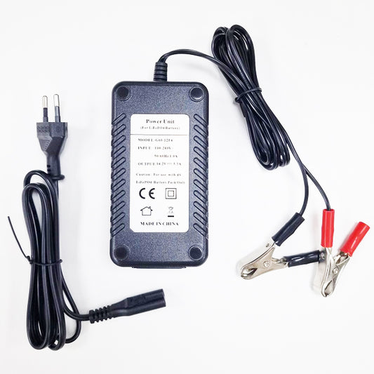 LXADCAV01-0-0Carregador 14,2V 3,3A para baterias 4S de lítio ferroso LiFePO4 (12,8V) com pinças crocodilos